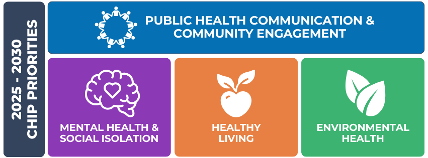 Community Health Improvement Cycle The Community Health Improvement Cycle is a two-step process that helps NSHD understand the community’s changing health priorities and needs, with community input at the core. First, we conduct the Community Health Assessment or CHA Next, we create the Community Health Improvement Plan or CHIP North Shore Community Health Improvement Plan (CHIP) 2025-2030 The Community Health Improvement Plan (CHIP) is the community’s roadmap for addressing the key health priorities identified in the CHA. The CHIP focuses on: Developing actions to address community health needs Promoting healthier and safer environments Collaborating with community members to create positive changes NORTH SHORE THRIVE: A Community Health Plan (CHIP) 2025-2030 is a living document, continually evolving. For the most recent version of the working draft, please click the image below. Updated 3/19/2026 North Shore Community Health Assessment (CHA) 2022-2026 The Community Health Assessment (CHA) collects data and community input through surveys and interviews to identify key health priorities and needs. The CHA focuses on: Identifying community health needs Advocating for healthier environments Allocating resources where they will have the most impact Read the 2022-2026 North Shore Community Health Assessment here: NSHD CHA 2022-2026 Supplemental Information Appendix A: Community Survey Materials Community Survey Questions Community Survey Results - Summary Tables Appendix B: Key Informant Interview Materials Key Informant Interview Questions Previous Reports Previous North Shore Community Health Improvement Plan 2020-2024 Previous North Shore Community Health Assessment (CHA) 2017-2021 Previous North Shore Community Health Improvement Plan 2014-2019 Previous North Shore 2015 Community Health Survey Updated 3/25/2025
